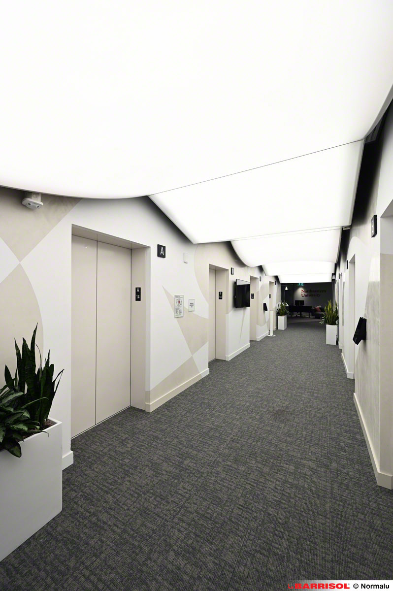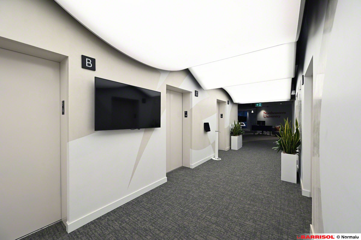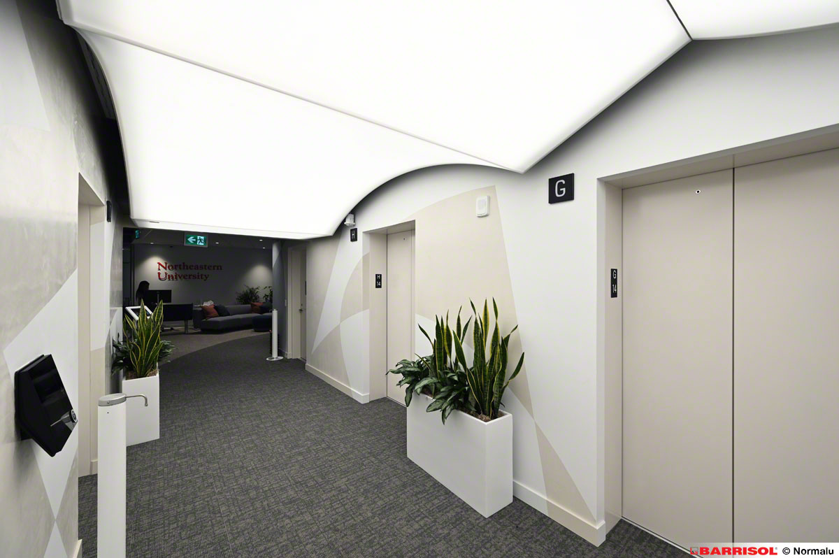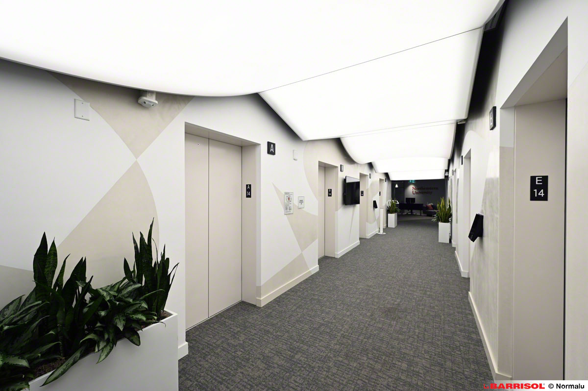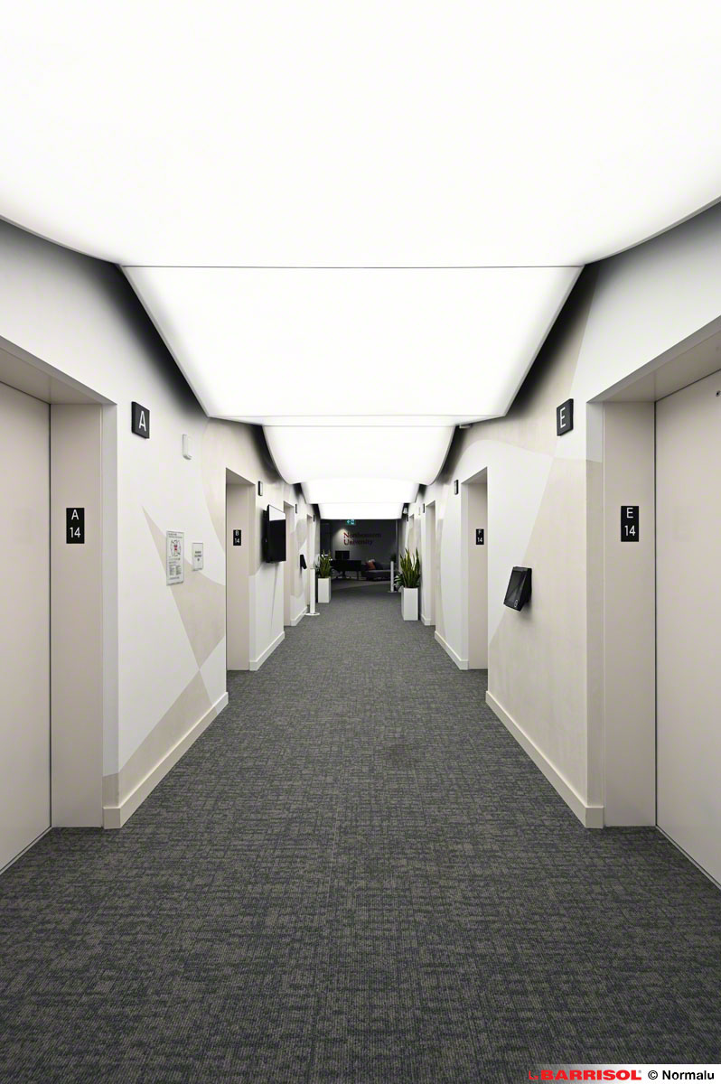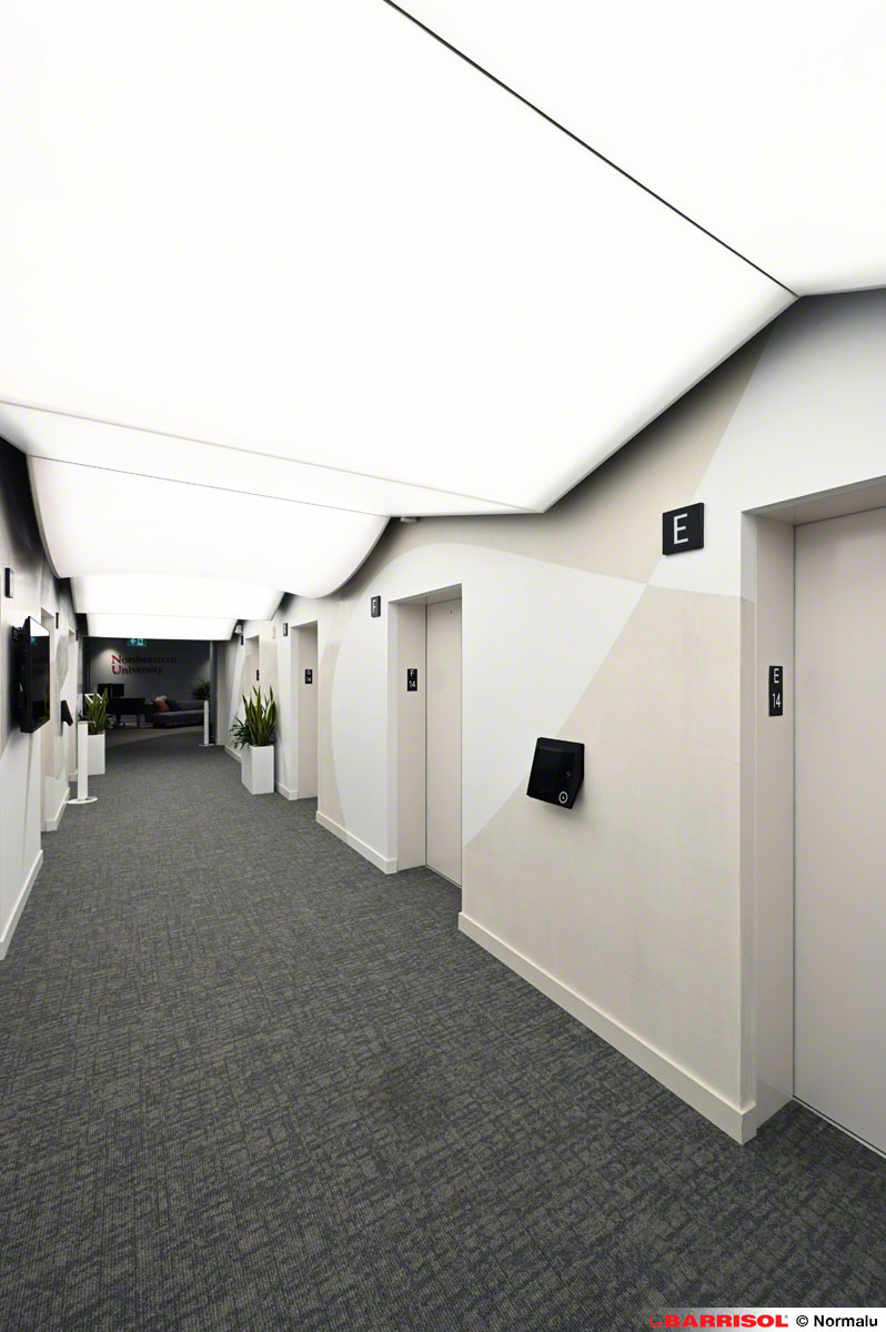 Ce concept original a été répliqué sur plusieurs étages, à la sortie des ascenseurs, offrant ainsi une expérience visuelle cohérente et remarquable dans tout le bâtiment.