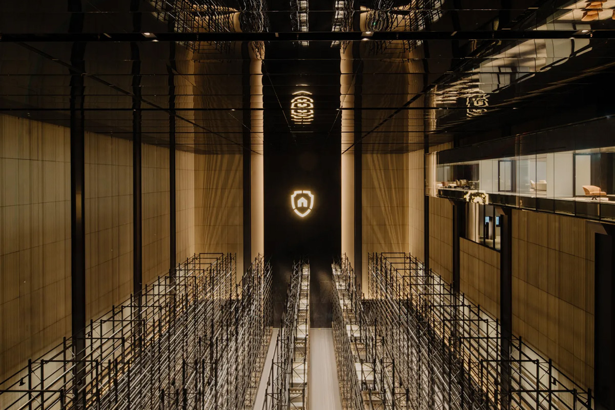 Le projet "The Reverse" à Singapour incarne l'alliance parfaite entre design audacieux et fonctionnalités ultra-sécurisées dédiées au stockage d'objets de luxe tels que l'or, les montres rares et autres trésors précieux. Au cœur de cet espace d'exception, 1 500 m² de miroirs acoustiques noirs et de miroirs noirs Perfodesign signés Barrisol créent une atmosphère raffinée et mystérieuse, tout en garantissant une acoustique maîtrisée.
